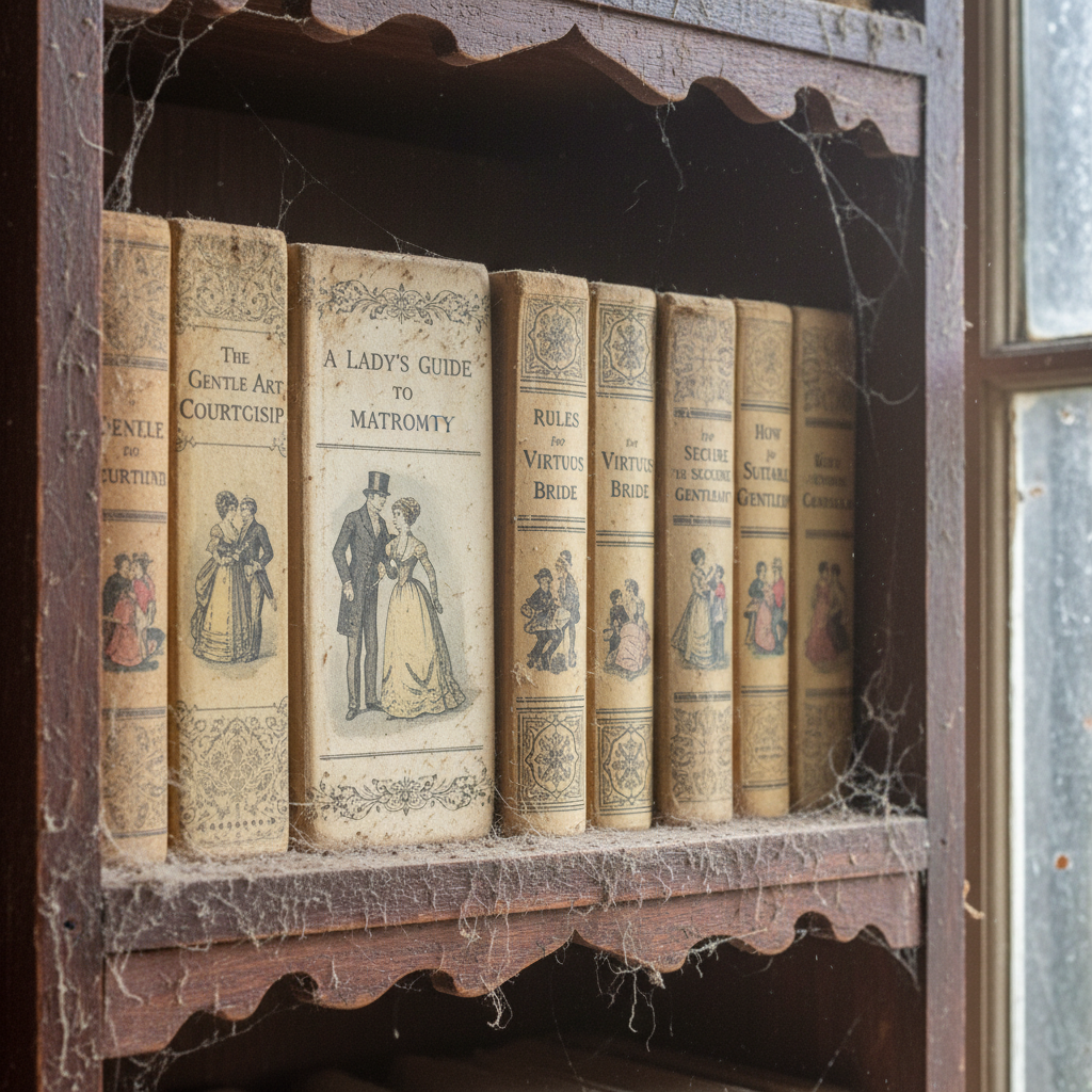 Outdated romance advice books forgotten on a shelf, representing the decline of generic relationship tips and the rise of personalized romantic recommendations