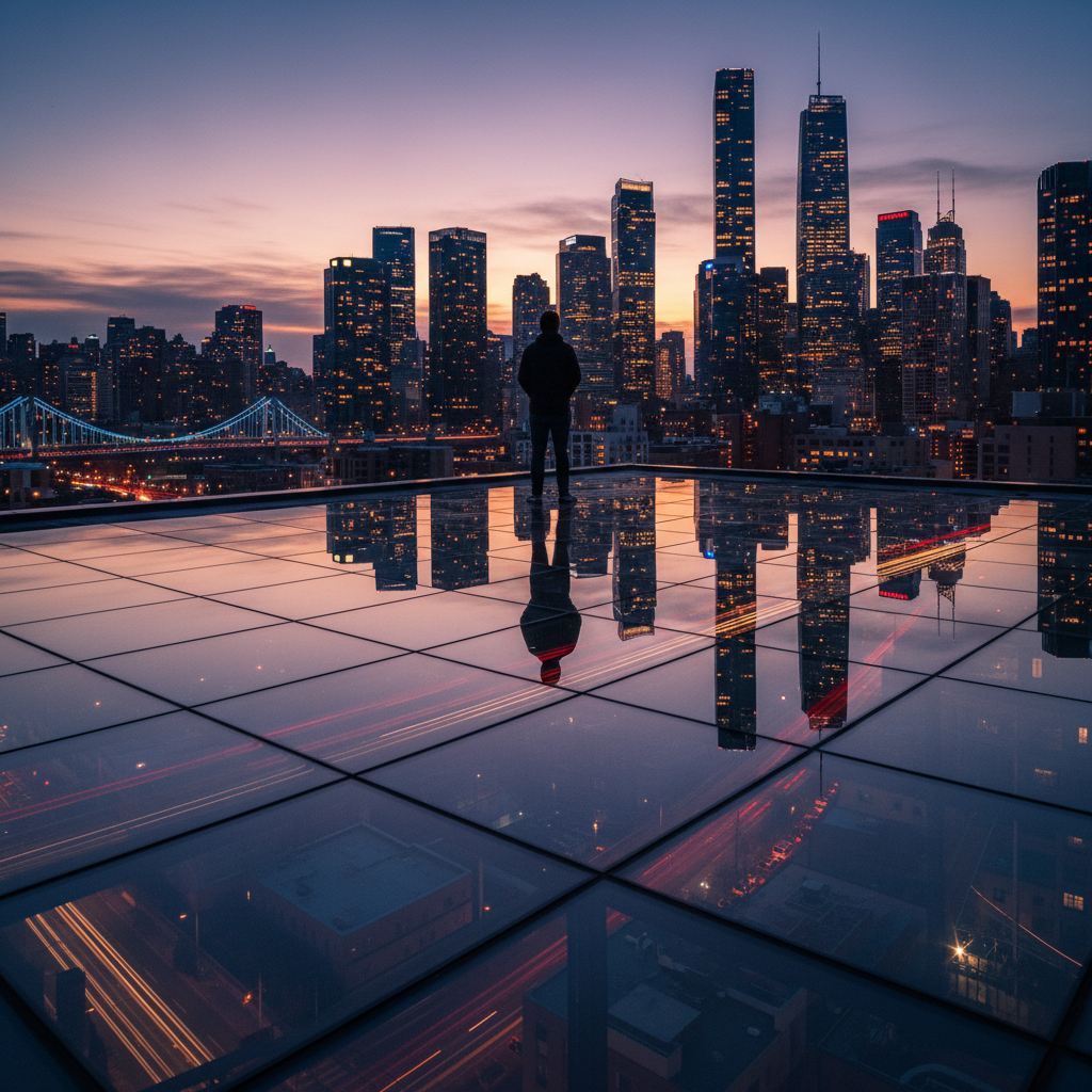 Alt text: Person on rooftop at dusk, symbolizing reflection after trust loss.